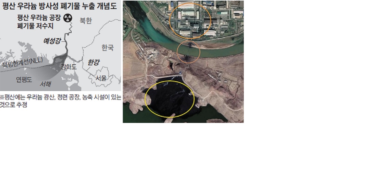 황해북도 평산의 북한 우라늄 공장에서 나온 방사성 폐기물이 서해로 흘러들어 갈 수 있다는 분석이 15일(현지 시각) 미국에서 제기됐다. 평산은 북한의 우라늄 광산이 몰려 있는 곳으로 정련 공장과 농축 시설이 있는 것으로 정보 당국은 파악하고 있다. 이 같은 주장이 사실이라면 예성강 지류에 있는 평산 우라늄 공장의 고농축 방사성 폐기물이 예성강을 타고 흘러 연평도·강화도 해역까지 흘러올 수 있다. 전문가들은 북한 우라늄 시설에 의한 서해 오염 피해 가능성을 배제할 수 없다고 했다.