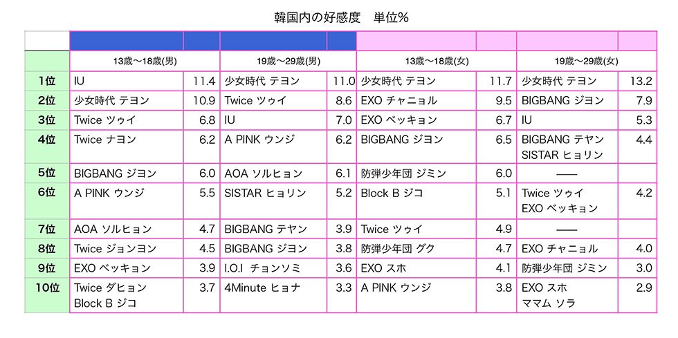 누가 1위해야 납득한다는거임? 그 가수가 아무리 좋아도 노래 안 좋으면 1위 못하는건 당연한거 아님? 태연 아이 레인은 성적 좋았어도 그 다음 노래 (제목모름) 노래 별로니까 인기 하락한걸테고요 그리고 그건 빅뱅이지 지드래곤 노래가 아닌데요? 아이돌 개개인 물어보는거고 세명 고르라고 했을 때 태연이나 아이유나 솔직히 인지도도 높고 활동기간도 높으니 뭐 말했을수도 있고요 아티스크 전체로 봤을때는 트와이스가 전체 2등했구ㅇ그리고 박진영 공기반 그딴건 여기서 알바 아니고 관계도없고요 ㅋ우리나라에서 가장 공신력있는 기관이 공신력있는 방법으로 조사한결과고 박진영이든 누구든 연예계 관계자들이나 언론사에서 항상 보고 코멘트 남기는 조사라고 그만큼 지난 수년동안 공신력을 유지해온 조사라는거에요
