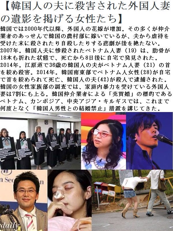 この韓国の家庭内における女の立場を鑑みると極端な少子化は大学卒で外国の事情に目覚めた女たちの沈黙の反乱あるいは復讐劇と言えるのではないか別れ話に逆上、20分間の暴行と監禁…韓国・衝撃のDV「お前を殺して刑務所に行く」