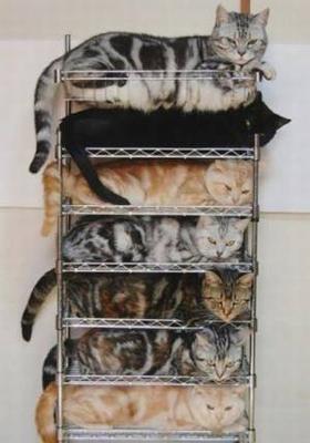 これは何匹?一番上のショートヘアーと黒猫の間に小さめの薄い茶トラがいるの?