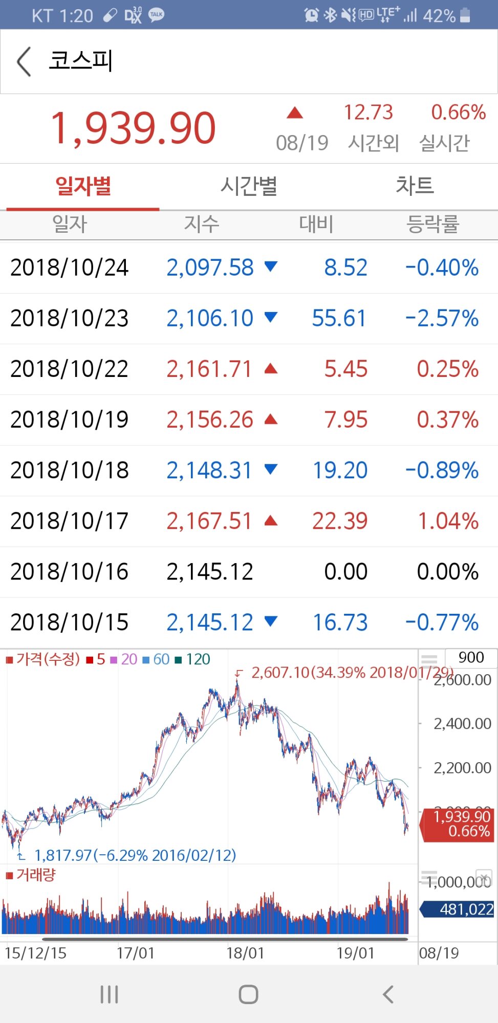 kospiは下落までの滞空時間は長めなので、この地点まで下がっても、まだ大丈夫です