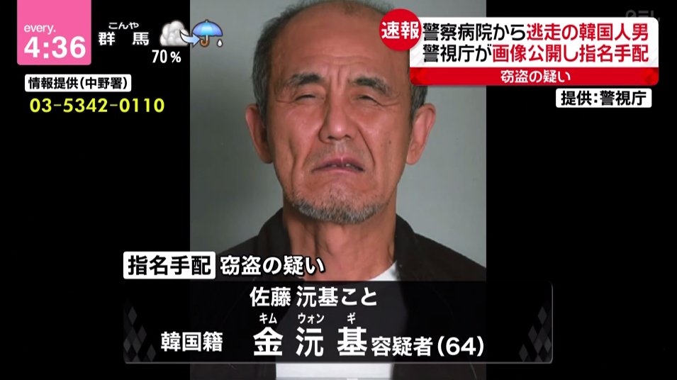 在日コリアンを住まわせ続ける事は、治安維持費や司法経費の無駄。【速報】警察病院から逃走の男 身柄確保 東京都内で見つかる 警視庁(12:24)