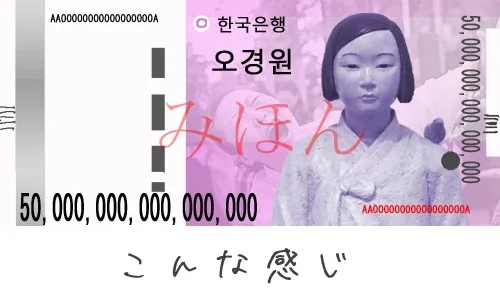 韓国での最高権力者である、自称92歳の元慰安婦を肖像画にした紙幣を請願します。まずいなこれは