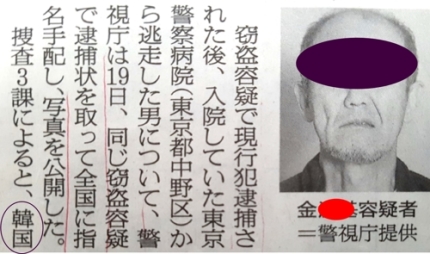 韓報道「嫌韓助長!日本で窃盗容疑者異例の顔出し指名手配ニダ」」