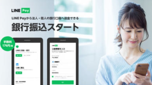 LINE Payは、LINE Pay残高を法人・個人の銀行口座へ振込できるサービスを開始した。残高を他人の銀行口座に振込可能にするのは、国内決済事業者として初。振込手数料176円/回(税込)。