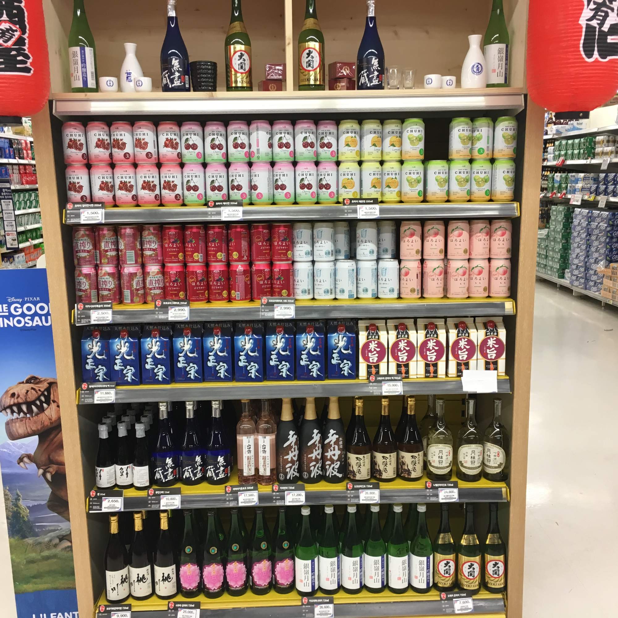 お酒を楽しむときは ワインとチーズ、MAKKEOLIとCHIJIM みたいに料理と酒の国籍は一緒にするのが合理的で正しい楽しみ方だと思います。下から二段目、ピンクの「아마야기」は、安くて美味しい日本酒として、名前が挙げられることがあるよ。