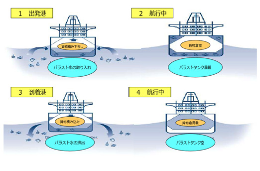 バラスト水は船舶のバランスを保つためタンクに入れる海水。