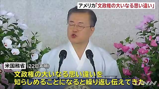 アメリカは、「文(ムン)政権の大いなる思い違いを知らしめることになると繰り返し伝えてきた」として、韓国を異例の強い表現で批判しました。