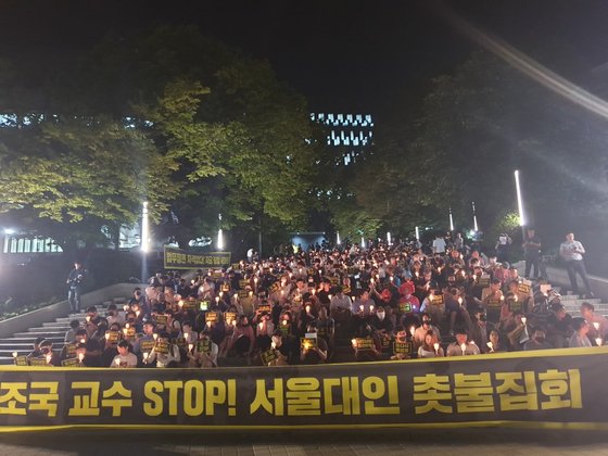 방금 전 20:30부터 시작된 서울대학교의 시위 모습입니다.