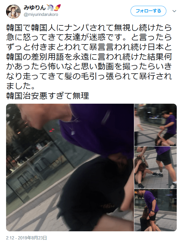 韓国を旅行中の日本人女性が殴る蹴るの暴行を受ける 証拠画像がSNSで拡散