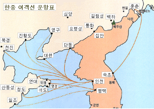 山東半島~北京~遼東半島~丹東と広い範囲で定期航路がある