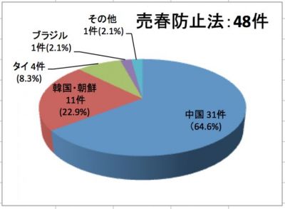 その中国に次いで韓国の売春婦の摘発が多いって事ですよ?