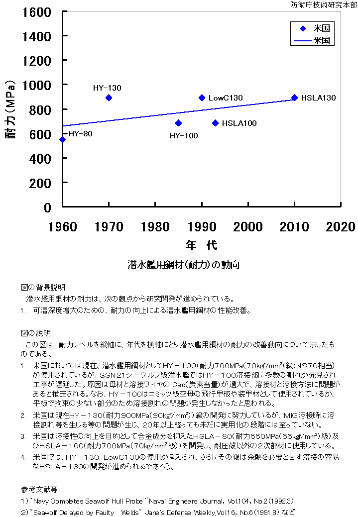 色んなものを百歩譲って・・・まぁ、デコイかな。米国USスチールで生産(受注)しているので最高強度の鋼鈑はHY-130(耐力89kgf)、HY-156(耐力108kgf)まで