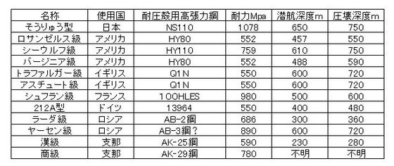 HY-130だったら凄いけどそれでも日本のはるしお型とかそうりゅう型よりは性能が落ちるのかHY-100(耐力69kgf)