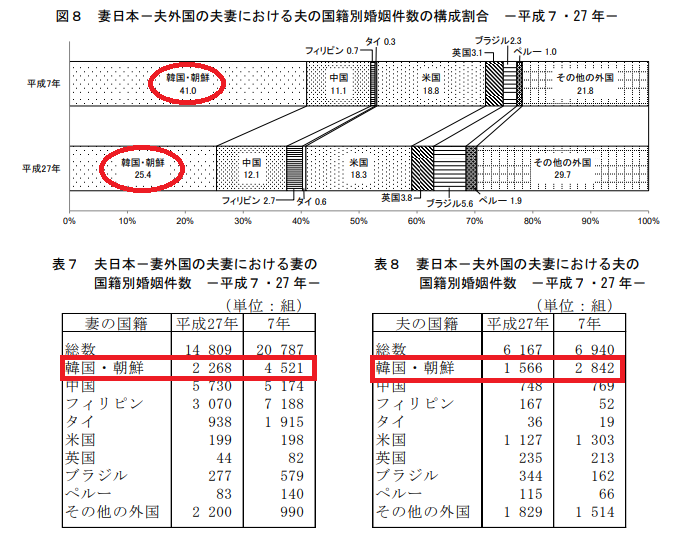 つまり実質、本国の韓国人男性との婚姻は同胞の1/3ってこと。諄いが減少傾向にある。>>13