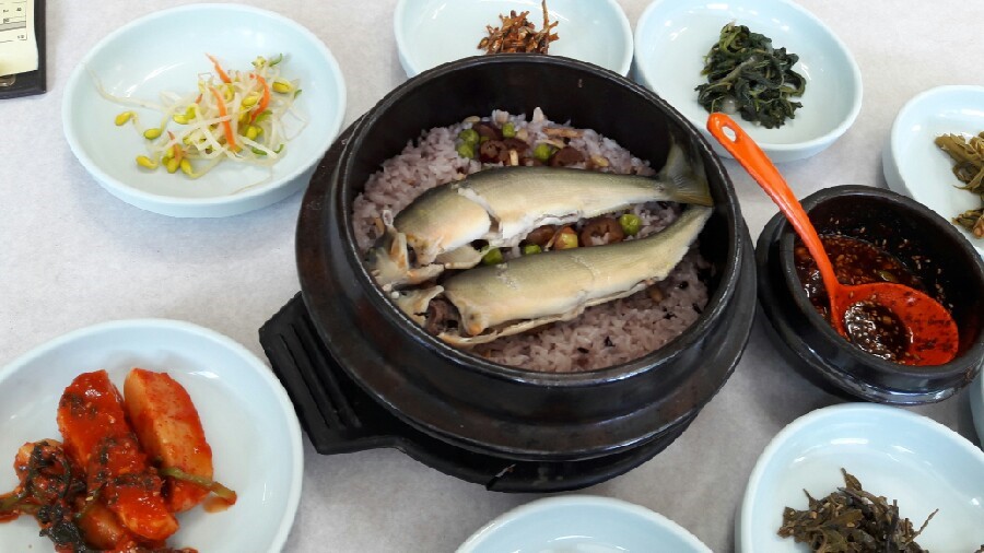 불린 쌀에 은어를 넣고 지은 경상도 지역의 전통 향토 음식.
