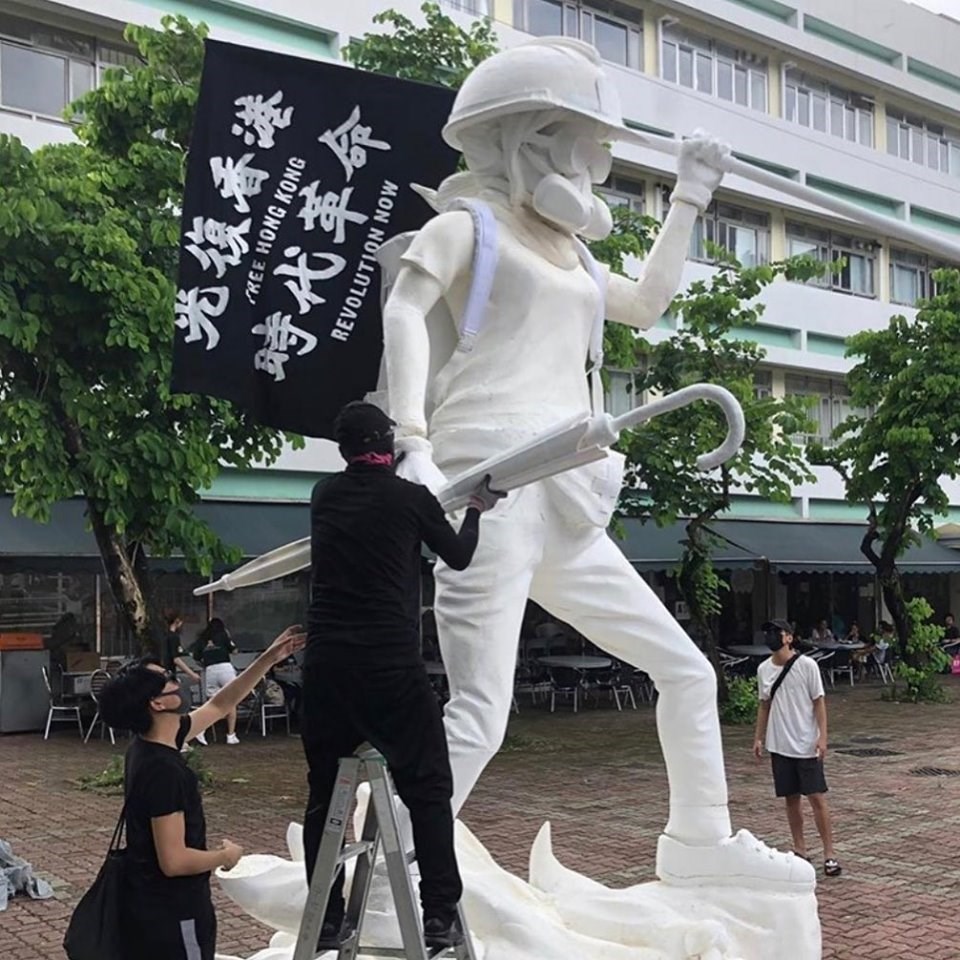 一方、香港中文大では1日までに、高さ4メートル、重さ100キロの「香港民主の女神像」が公開された。