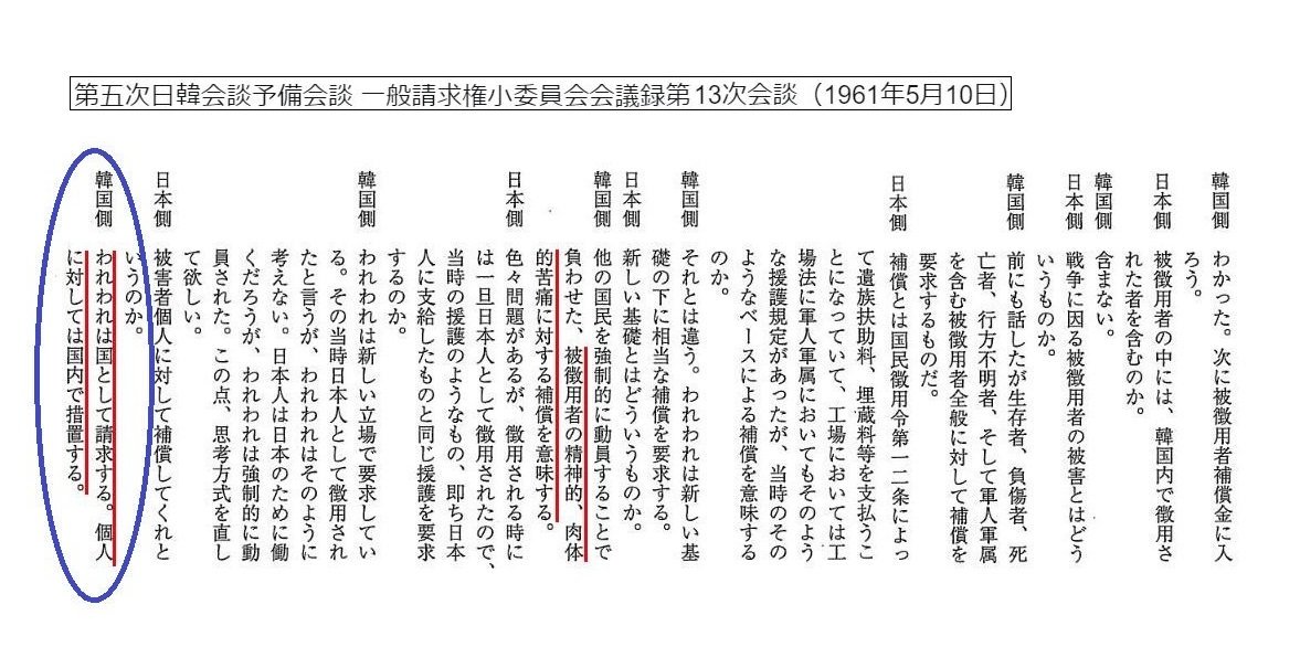 徴用工判決は韓国司法が勝手に国際条約を無視して出した物で、それに日本に従えというのは条約に違反してるようなものです。