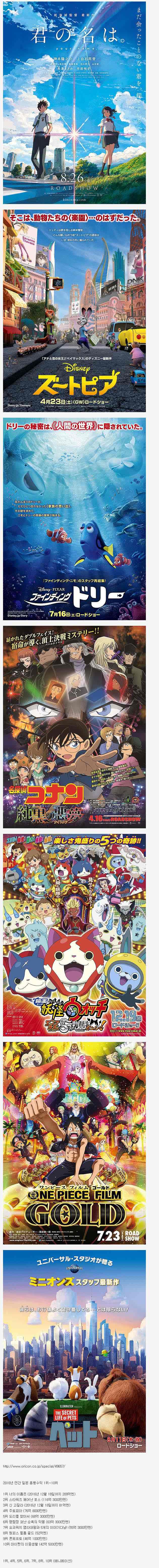 오리콘 관객 순위 Top10 순위 대부분이 애니메이션이라서 일본인은 영화보다는 애니메이션을 즐겨본다고 생각한 (웃음)他には無いのかな?近年ね