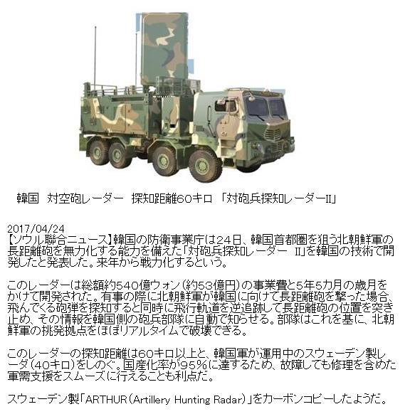 技術の進歩は凄いな北韓が最近撃ってる新型の長距離砲ってのは捕らえれる?