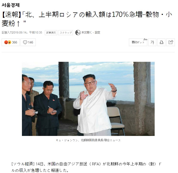 【速報】北朝鮮、上半期ロシアの輸入額は170%急増···穀物・小麦粉↑