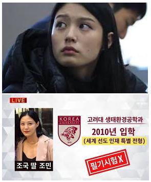 なお、チョ・ミンヒの単位を落とすとクビになる(本当かどうか不明)ので、それを恐れた教授陣がやむを得ずつけた成績がGPA1.13と思われる。美人の娘(27才)が不正入学なら