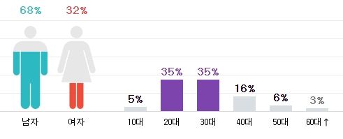 健康に係わる北朝鮮のウラン溶液垂流しのスレでは、20代・30代が一番多く、女性の比率も30%を越えている。