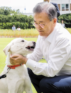 これにより、ソウル・仁川・大田・光州で分譲を依頼し、その中二匹が仁川に住むされた。豊山犬六匹はこの日午前、大統領府でムン・ジェイン大統領の歓送を受けた。ドア大統領は豊山犬の首頭を撫でた。