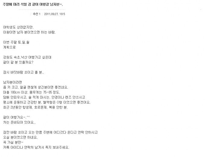 여행과 전혀 관련없는 조건을 내걸었습니다