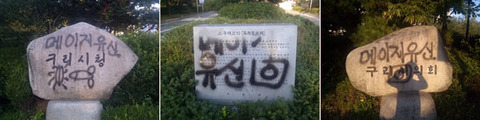 九里市の高句麗記念碑に「明治維新」などと落書き。当初は極右日本人と推定