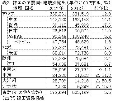 韓国の2018年の対香港輸出額は460億ウォン(約40億円)と、中国、米国、ベトナムに次ぐ4番目の輸出相手国・地域。うち、73.0%を半導体が占めた。