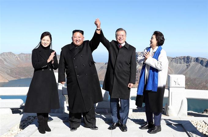 北韓が金正恩国務委員長の首脳外交の成果をまとめた映像から、文在寅大統領の姿だけすっぽり抜いていたことが10日、確認された。