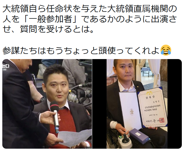 文在寅に対して質問するというヤラセであった。
