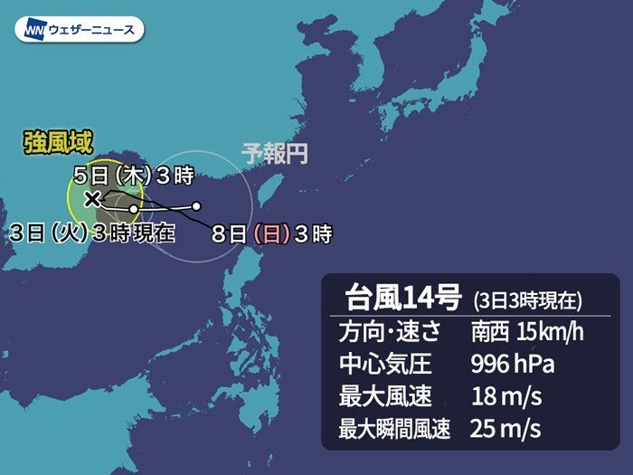 中部最高300mm非... 台風「リンリン」週末朝鮮半島北上