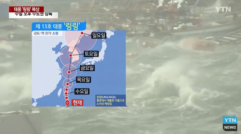 폭우가 내린 지 얼마 지나지 않았는데 일본 쪽으로 휘면 더 재미있을 것 같다
