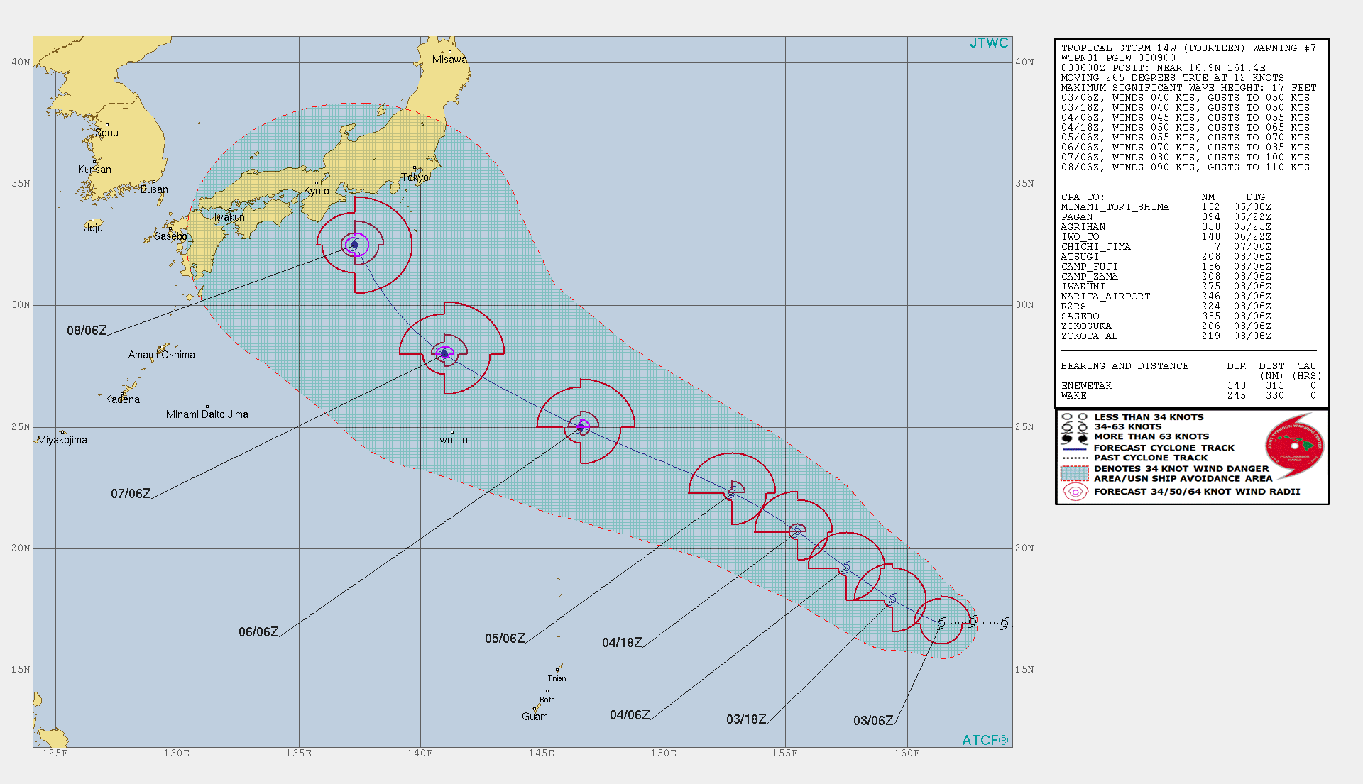 九州も影響受けるかもですが、朝鮮半島直撃の米軍予想。