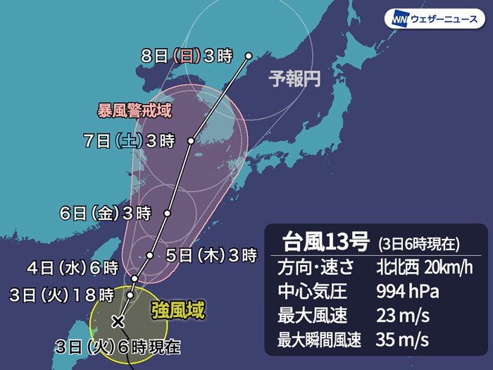 気をつけろ。家でカイカイ見てろ。13号かなりゆっくりだね