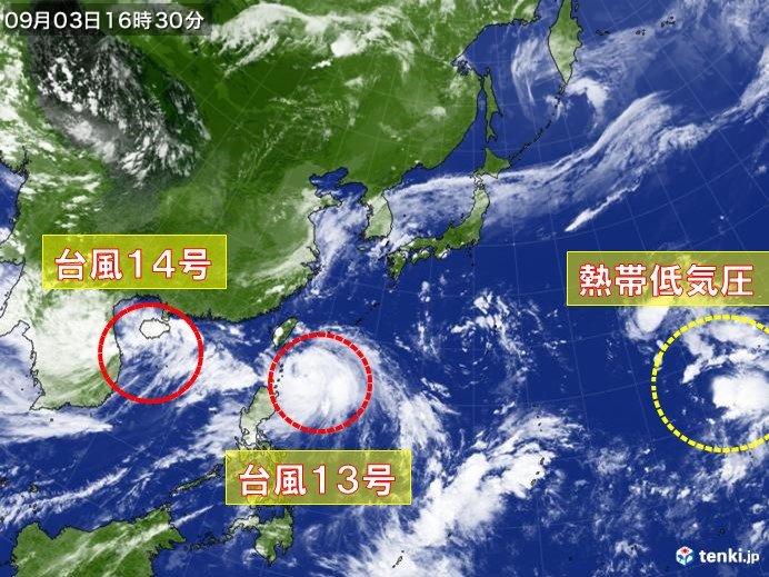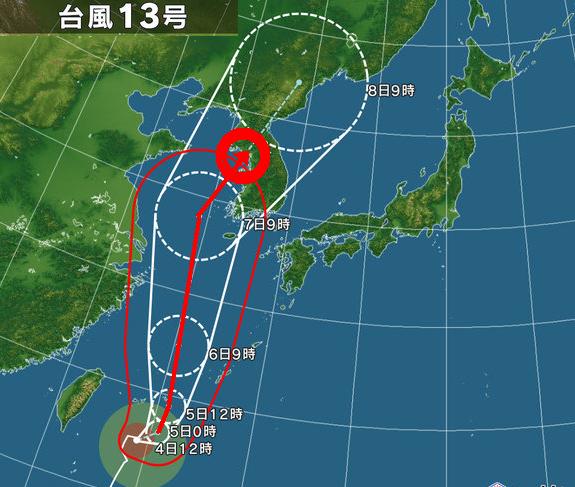 だから、この台風ってば、きっと正義の台風だよね! 台風がポンプの役割をして、熱帯の暖かく湿った空気を日本に停滞している秋雨前線にガンガン送り込りこんで豪雨になる可能性もあるから、朝鮮半島に行くからといって喜んでいる場合じゃ無いだろ。