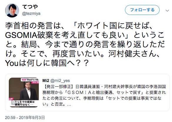 元々から信頼できないし、そんな国を優遇する必要もない。「GSOMIAと日本のホワイト国維持で足りないなら…」