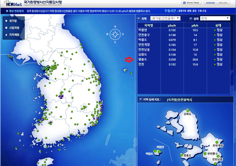なんて言ったら、南朝鮮も同じような状況か仁川空港がある영종도の放射線量 0.245μSv/h