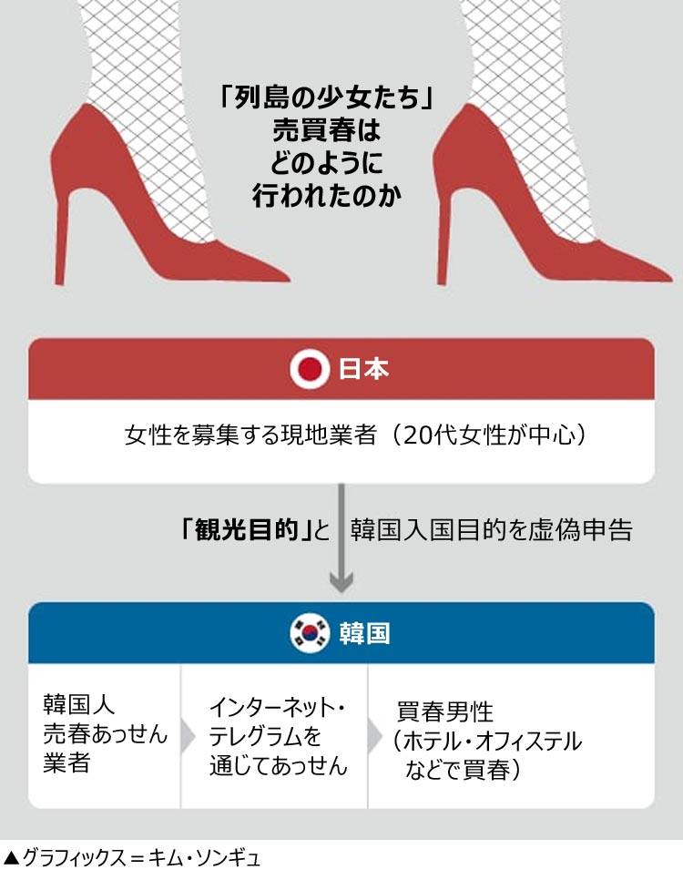 警察は、日本人女性たちが売春目的で韓国に来たのにもかかわらず、入国目的を「観光」と偽っていたとみて、出入国事務所に身柄を引き渡した。