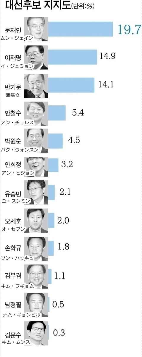 3위 반기문 -> 쓰레기, 박근혜류의 인간イ・ジェミョン頑張れ!