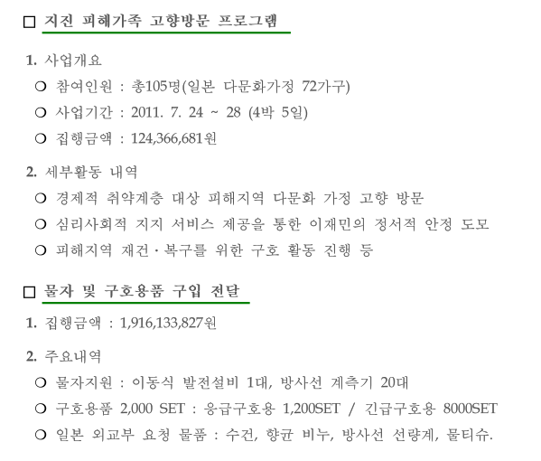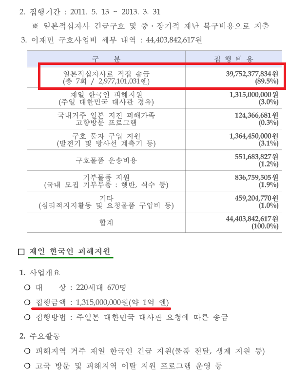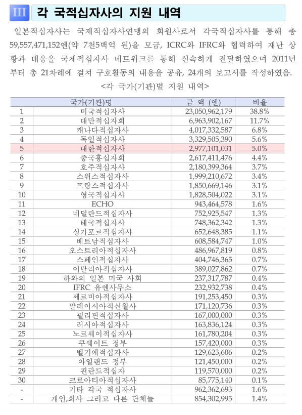 동일본 대지진에 100억원 가량 모금해서 보낸 것을