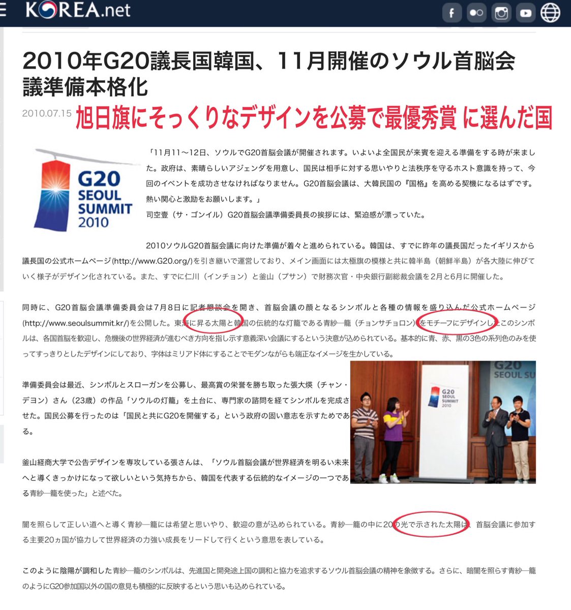 下手に旭日旗の歴史がどうのこうの、一般でもおめでたい場で使用されていることがどうのこうのと説明するより、韓国人が突然難癖をつけ始めて問題になったことを教えてやれば、外国人も韓国人のクレイジーさに気づいてくれるでしょう!2010年まで一切問題なかった…が事実なのに、
