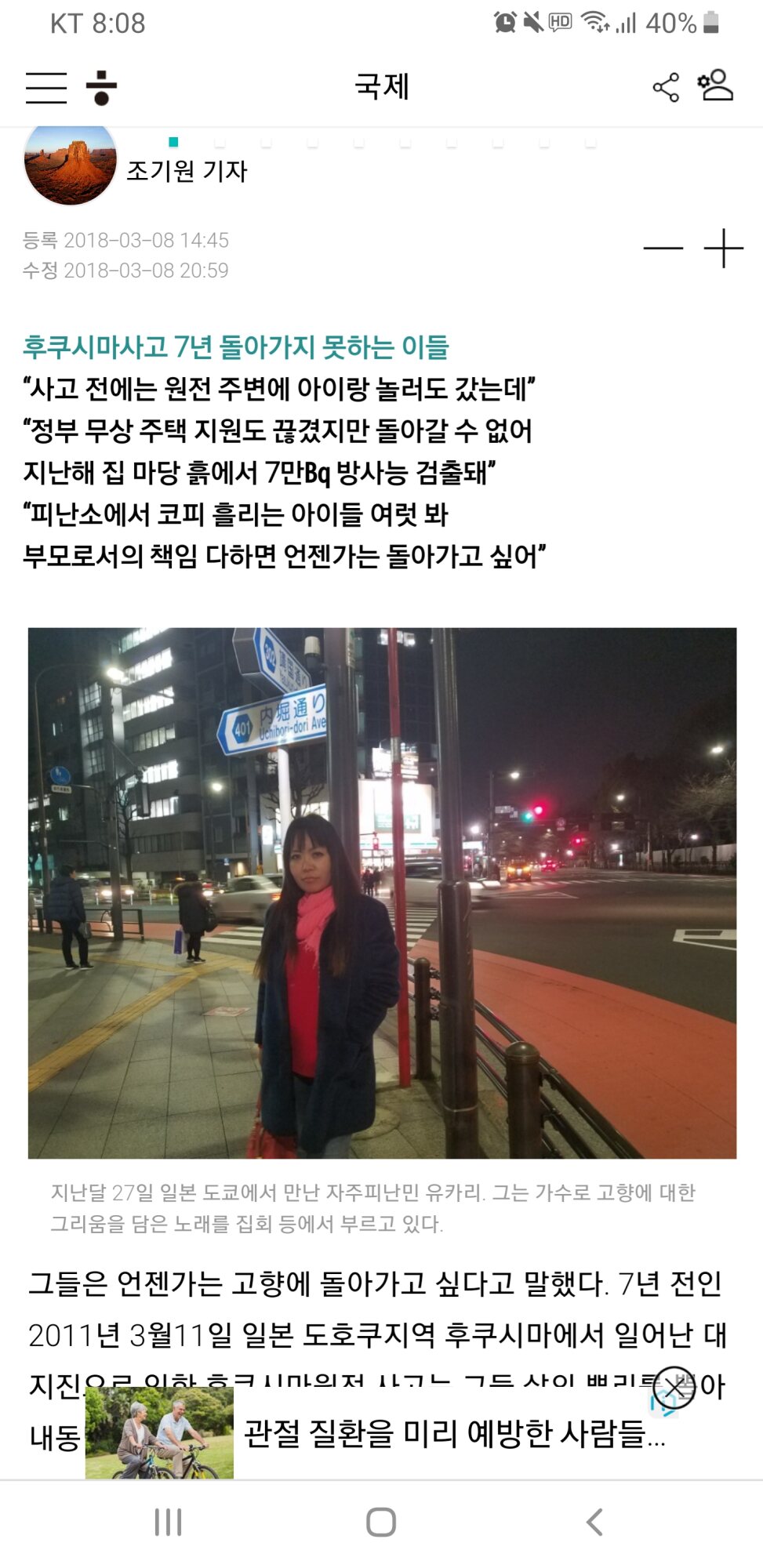 “후쿠시마 사고가 났는데도 꾸준히 일본 여행객이 늘어서 절망했습니다. 그런데 요즘 무역 전쟁으로 일본을 가지 않는 사람들이 늘고 있다니 그나마 다행입니다. ‘가능하면 가지 마시오, 가능하면 빨리 돌아오시오, 방사능에 민감한 어린이들은 데리고 가지 마시오’라고 당부하고 싶습니다.”
