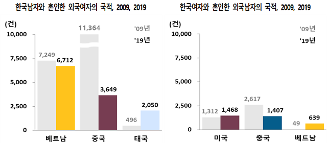 韓国の韓国人男性の国際結婚では、中国人やベトナム人の配偶者が日本人女性より圧倒的に多いようですね。기분나쁜 현상이구나