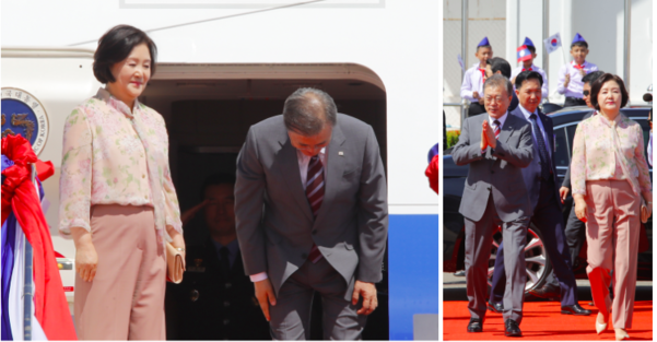 ムン・ジェイン大統領が、タイ⋅ミャンマー⋅、ラオスなど東南アジア3カ国歴訪を終えて、6日に帰国した。ところが、ドア大統領と金正淑女史が、ラオスで帰りに撮られたファンソンシク写真を置いて「席次」論議が起きている。ラオス歓送人ごみに囲まれた、金女史がドア大統領より三、四歩先歩いたからである。野党では、「写真を見ると、誰が国家元首であり、誰がその配偶者であることを知ることができない。青瓦台席次が崩れた」という言葉が出た。