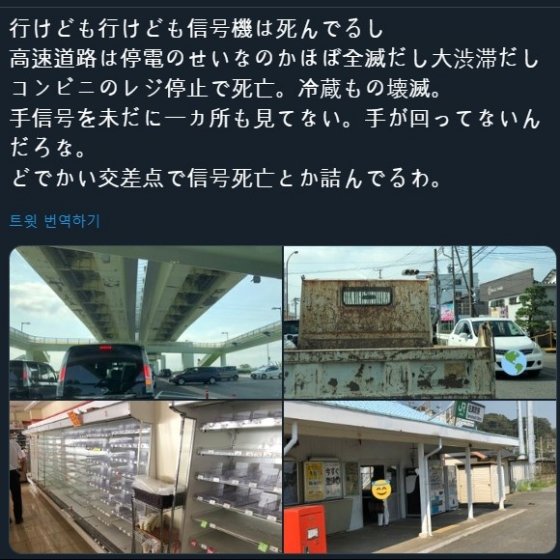 그는 "(2011년) 동일본 대지진 때엔 하루 지나서 정전이 해결됐다"면서 "이번 상황이 더 심각하다"고 말했다.