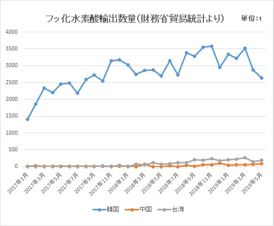 【フッ化水素】対韓国輸出管理:「横流し先は中国か」を統計から読み解く【どこいった】