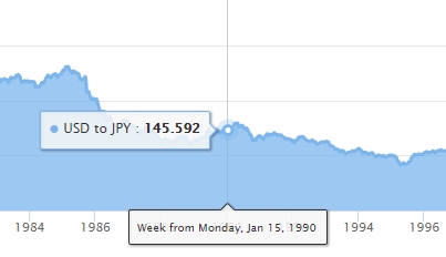 1990년 1$/145yen의 3배 엔고인 48~50엔 정도가 적정한 환율이겠지만 지금 $/yen 환율은 106엔이다